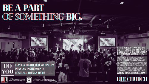 Ready to get involved with the worship ministry at LIFE Church? We have plenty of opportunities for you to get involved immediately. From running sound or lights, to operating broadcast and livestream equipment, to playing guitar or drums, to singing and leading worship...all of these opportunities and more are ready and waiting for YOU! Between 3 identical services on Sunday mornings, Student Ministry services on Wednesday nights as well as special events all throughout the year...there are plenty of times for you to serve. Complete the form below and we will follow up with more information and begin to get you plugged in ASAP!